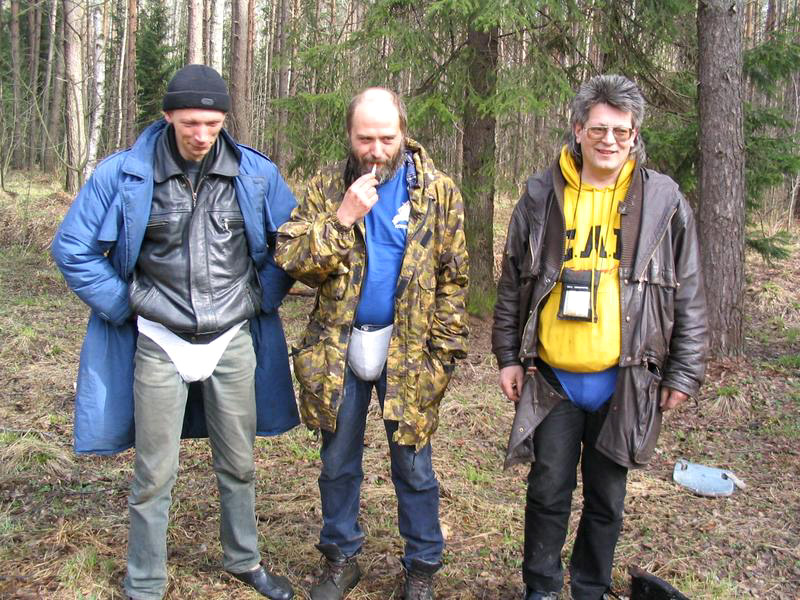 Сеич, Александр Фриденберг и Игорь Палыч Решетов. После купания в ручье.